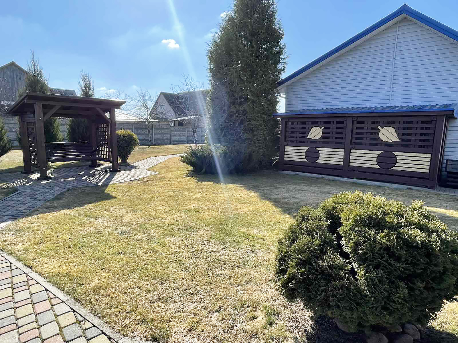Просторный земельный участок – 18 соток, огорожен забором. На его территории есть два кирпичных гаража. Также на участке располагается уютная беседка, зона барбекю и терраса – все необходимое для отдыха с семьей или друзьями. В этом доме прекрасно все, от роскошной отделки, до продуманных деталей интерьера и полностью готов к проживанию. А грамотная планировка придется по вкусу даже самому требовательному покупателю.