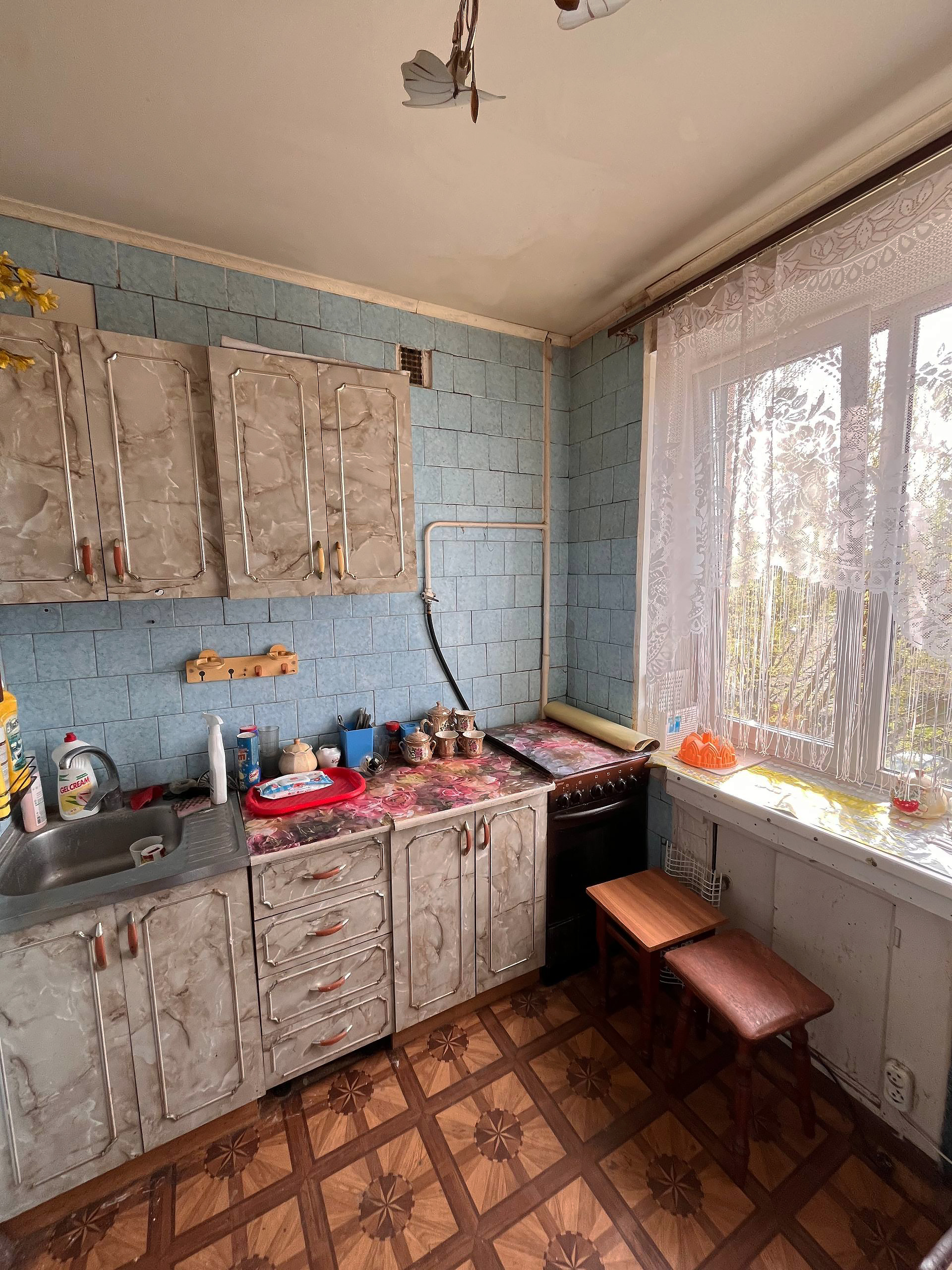 Этаж 3/4. Общая площадь квартиры – 33,2 кв.м, жилая – 18,7 кв.м, кухня – 5,5 кв.м.