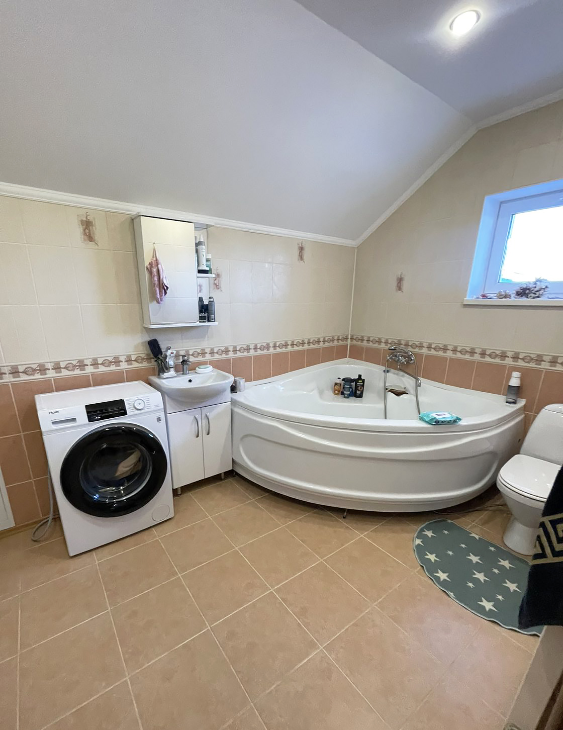 Имеются все коммуникации: электроэнергия, газ, водопровод центральный, канализация местная, отопление – газовое. Санузлы расположены на первом и втором этажах, и облицованы плиткой.