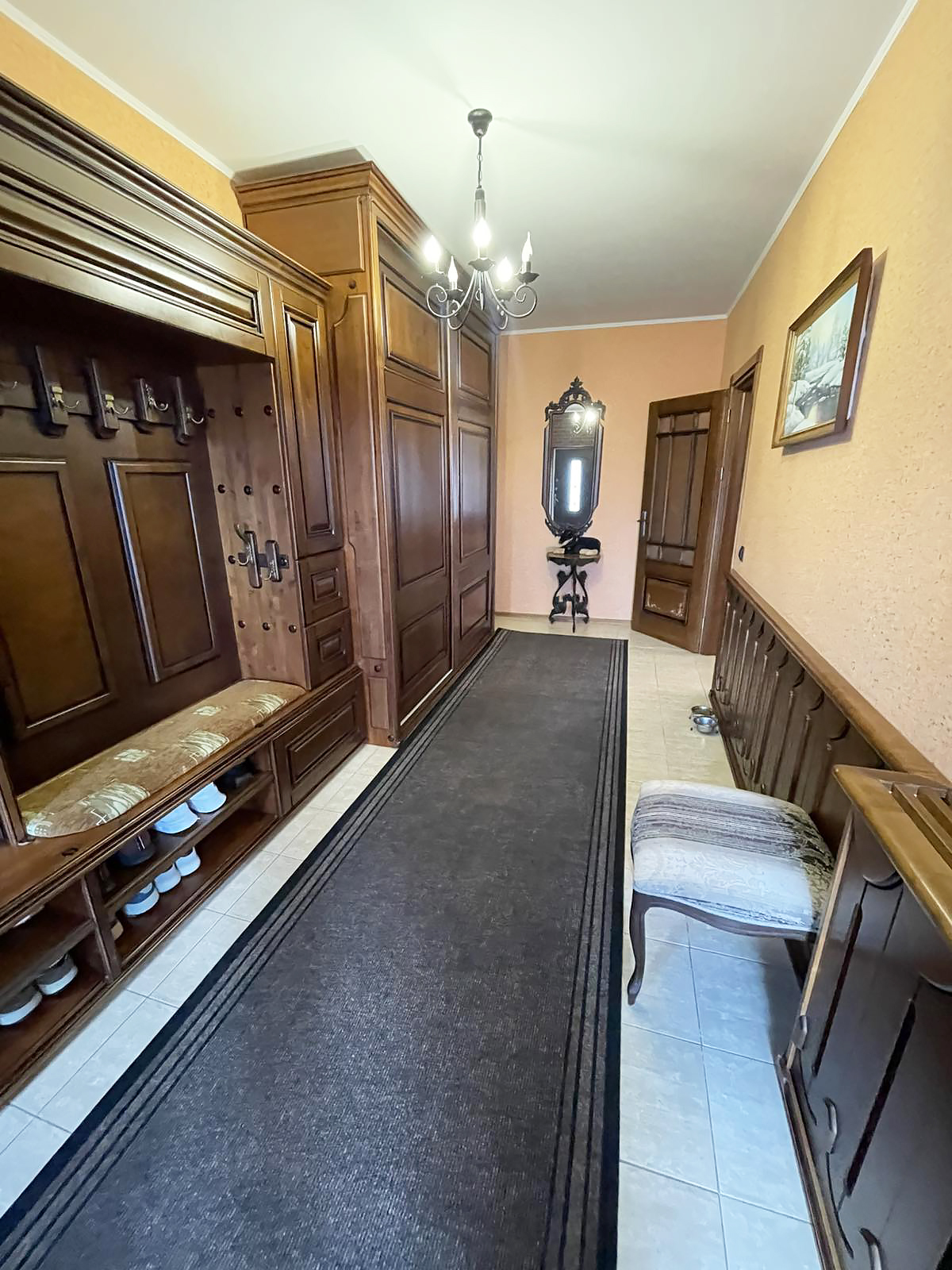Дом построен с использованием дорогих и качественных материалов. Крыша - металлочерепица, окна ПВХ, на первом этаже система теплый пол. Между этажами установлена лестница из натурального дерева. Интерьер заслуживает отдельного внимания: эксклюзивная мебель, выполнена на заказ из ольхи и сосны, выдержана в едином стиле и формирует цельный, благородный образ дома. Все – от мебели до техники – остается новому владельцу, позволяя сразу начать новую главу жизни без дополнительных вложений.