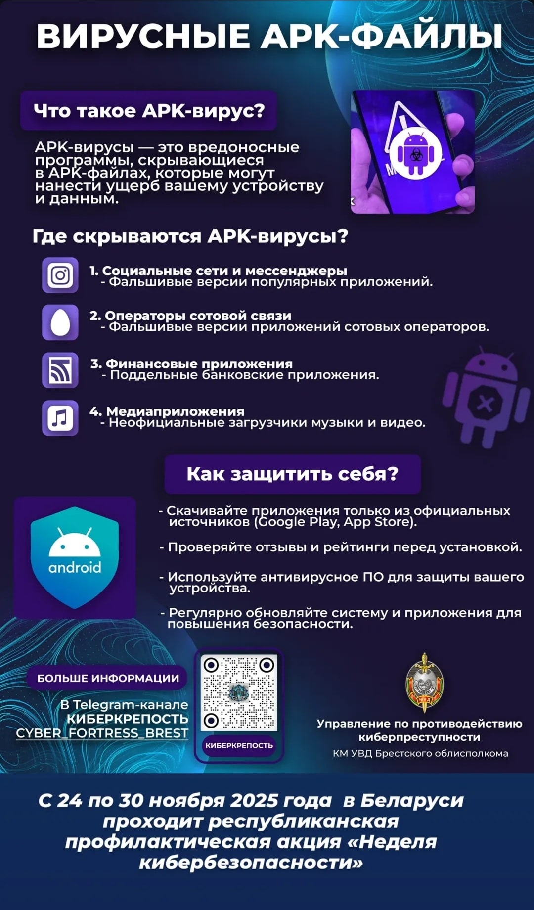 Актуальные профилактические материалы, а также новости в сфере протидействия киберпреступности, находятся на официальном Telegram-канале УПК УВД Брестского облисполкома КИБЕРКРЕПОСТЬ, а также в официальном Telegram-боте Киберпрофилактика.